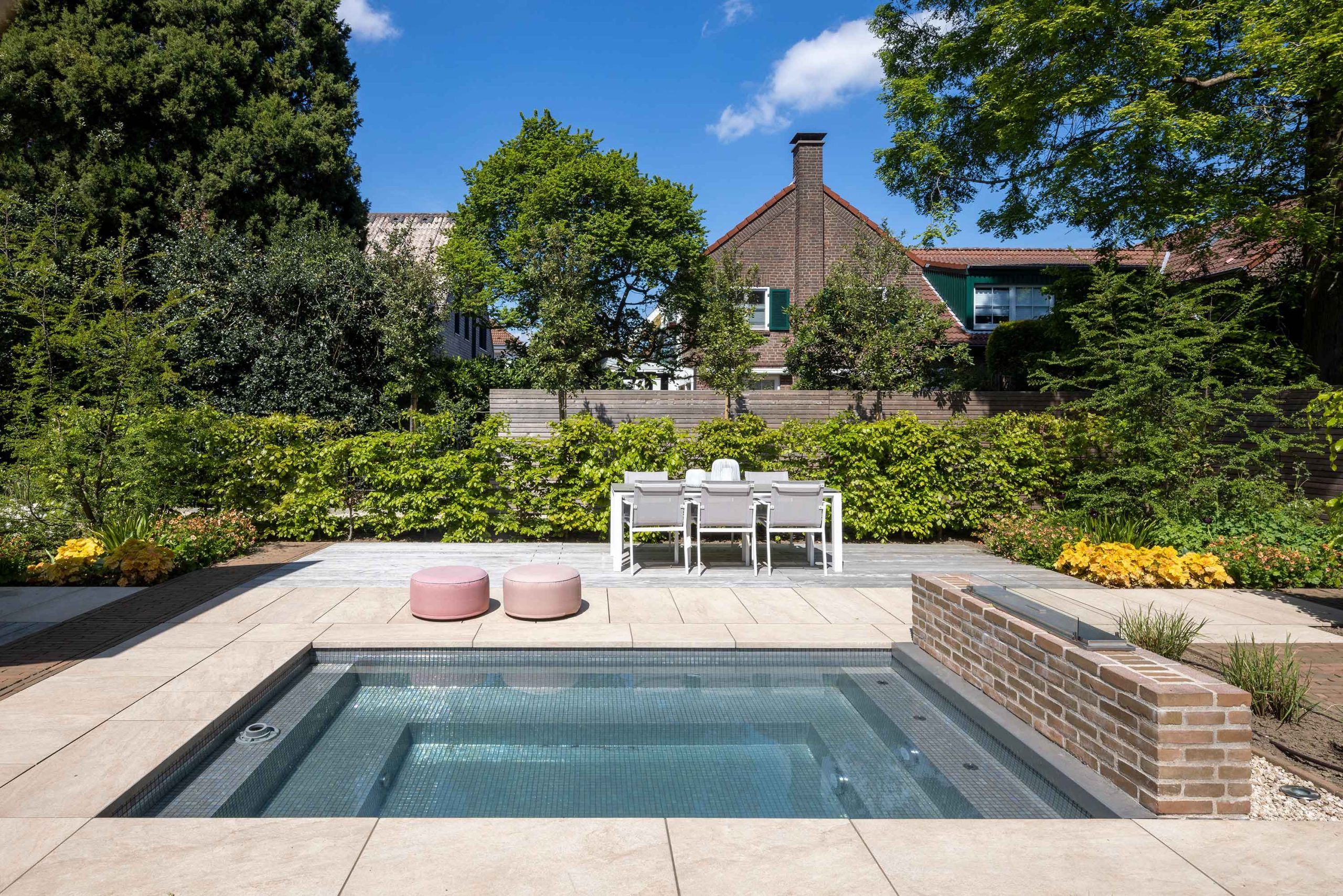 Ein eingelassener Pool verwandelt den Garten in eine Oase der Entspannung und Freizeit. Neben dem Schwimmen können Familien hier gemeinsame Zeit mit Grillpartys, Poolspielen oder einfach beim Entspannen am Beckenrand verbringen. So wird der Garten zum idealen Rückzugsort für Groß und Klein.